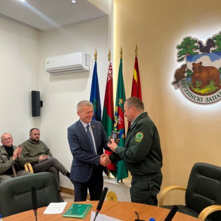 Юрий Иванович Шумский принял участие в профсоюзной конференции и вручил директору заповедника юбилейную медаль
