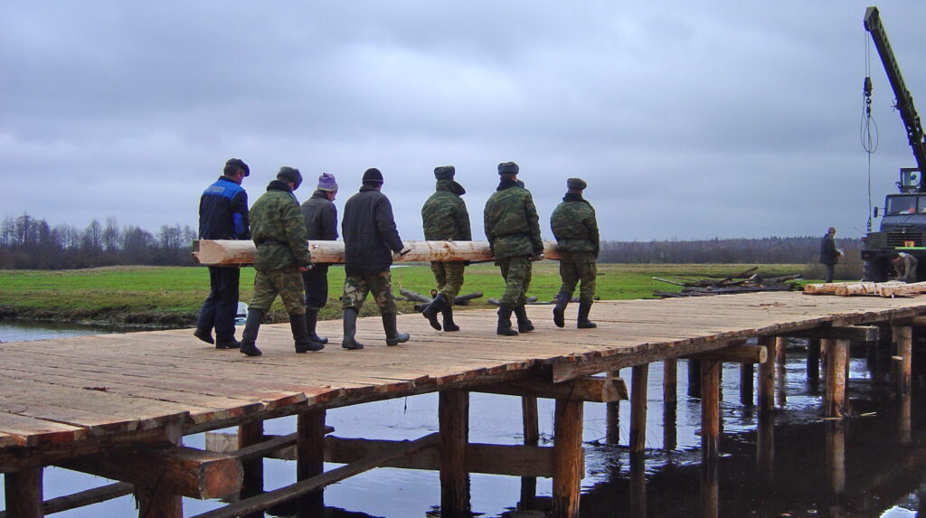 Силами войсковой части № 72471 построен новый низководный деревянный мост через реку Березину в районе деревни Броды.