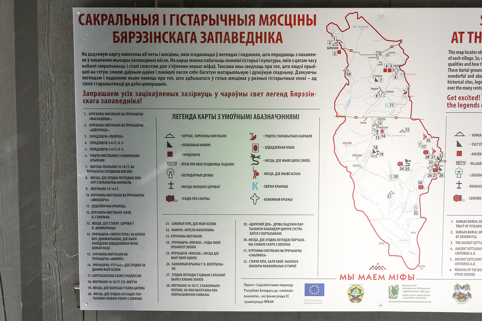 На этих объектах Вы — наши дорогие посетители — узнаете, как в прошлые времена мифологические образы регулировали деятельность человека в природном пространстве, воспитывали уважительное отношение к природе, учили правила гармоничного сосуществования с природным миром. А также узнаете о том, как через мифологию люди получали знания об окружающей среде.