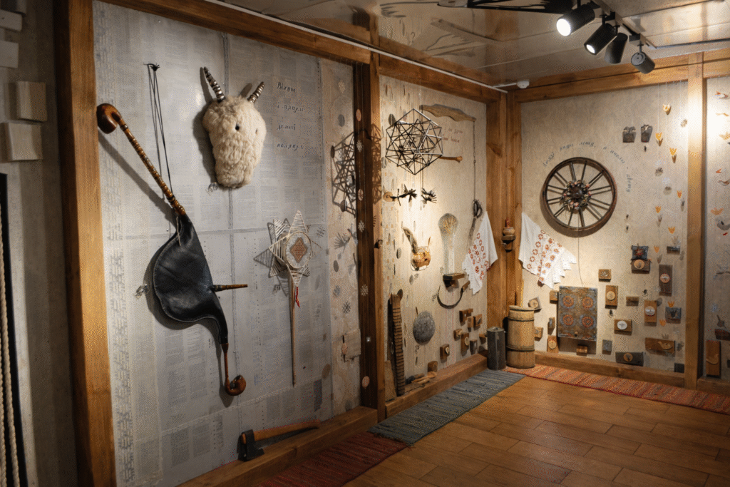 В помещении людского мира демонстрируется жизненный цикл человека, который реализуется через традиционный календарь.
