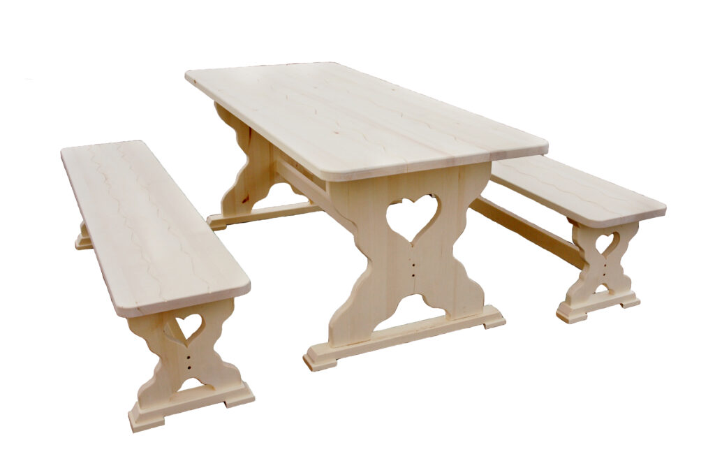 (1 стол и 2 скамьи без спинки)